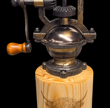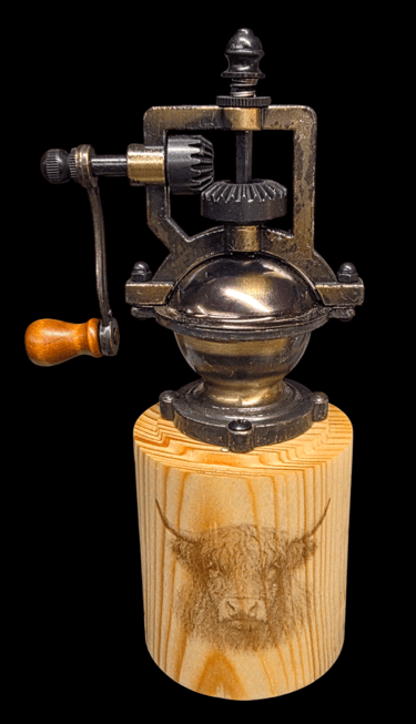Ce moulin allie simplicité d'un mécanisme rustique et chaleur du bois massif. Chaque pièce est tournée à la main, offrant un objet fonctionnel, robuste et plein de charme naturel.